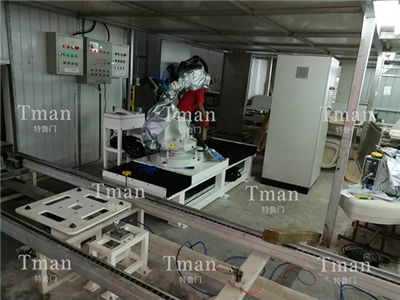 由机器人、旋转变位机、横向变位机、力控系统、工装卡具、自动滚涂快换机构、胎具、电控系统、机器人管线包、机器人防护服等构成。